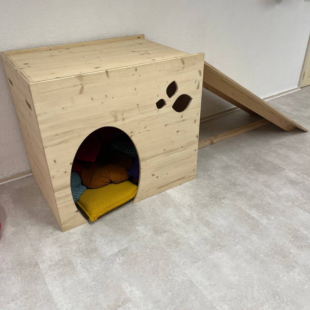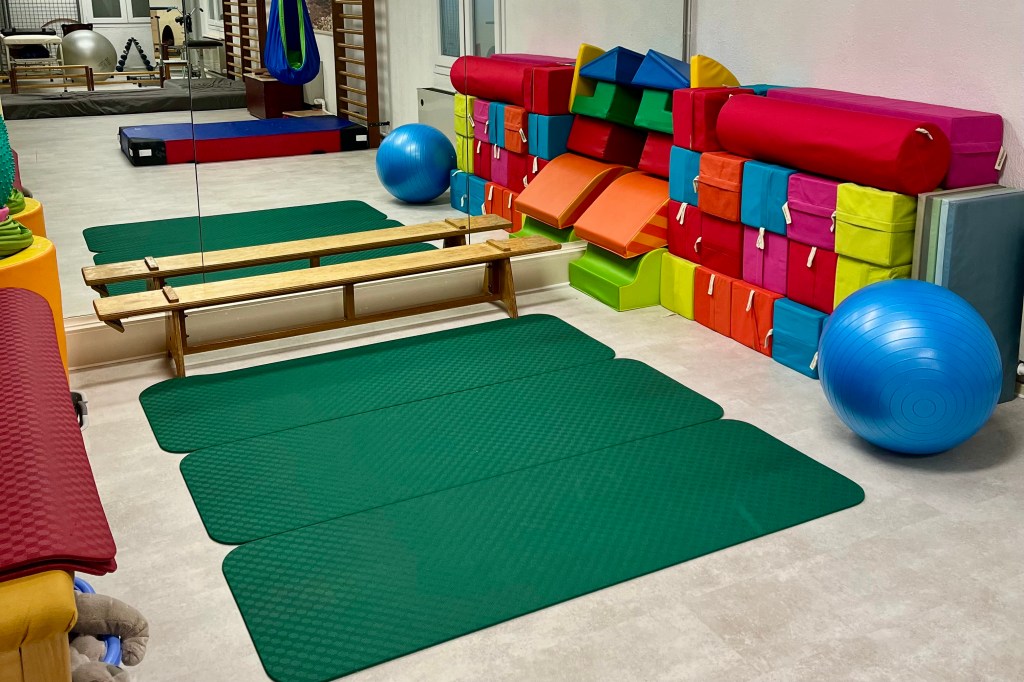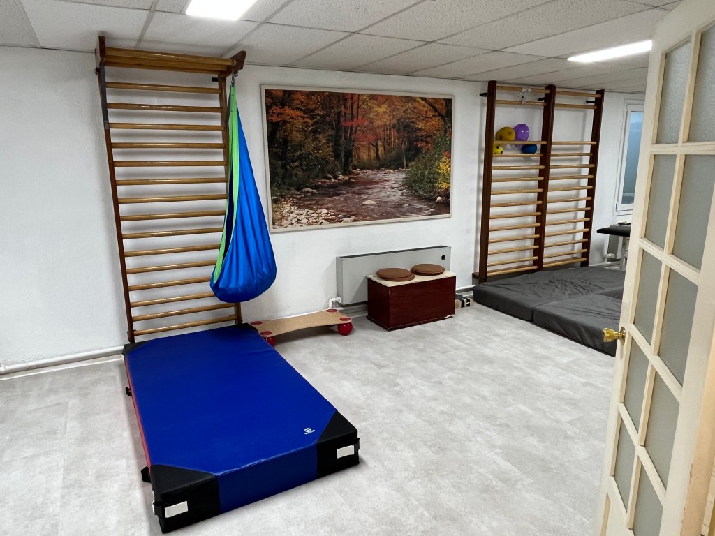 La salle comprend tout le matériel nécessaire à une séance de psychomotricité : modules en mousses, espalier, balles, tapis de sols, etc. Nous veillons que les séances se passent dans un cadre sécurisant et rassurant pour les enfants.